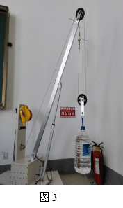 这是我们世纪广场正在进行的快速路建设工程,在建设过程中需要搬运非常多的建筑材料,比如钢筋、水泥,这就需要起重机的帮助了,今天我们就利用自制的起重机(如图3)模拟搬运建筑材料至一定高度的过程,并了解其工作过程。教师:首先将物体挂在钢丝绳的下端,哪位同学想上来尝试一下拉动绳子将物体提升起来。