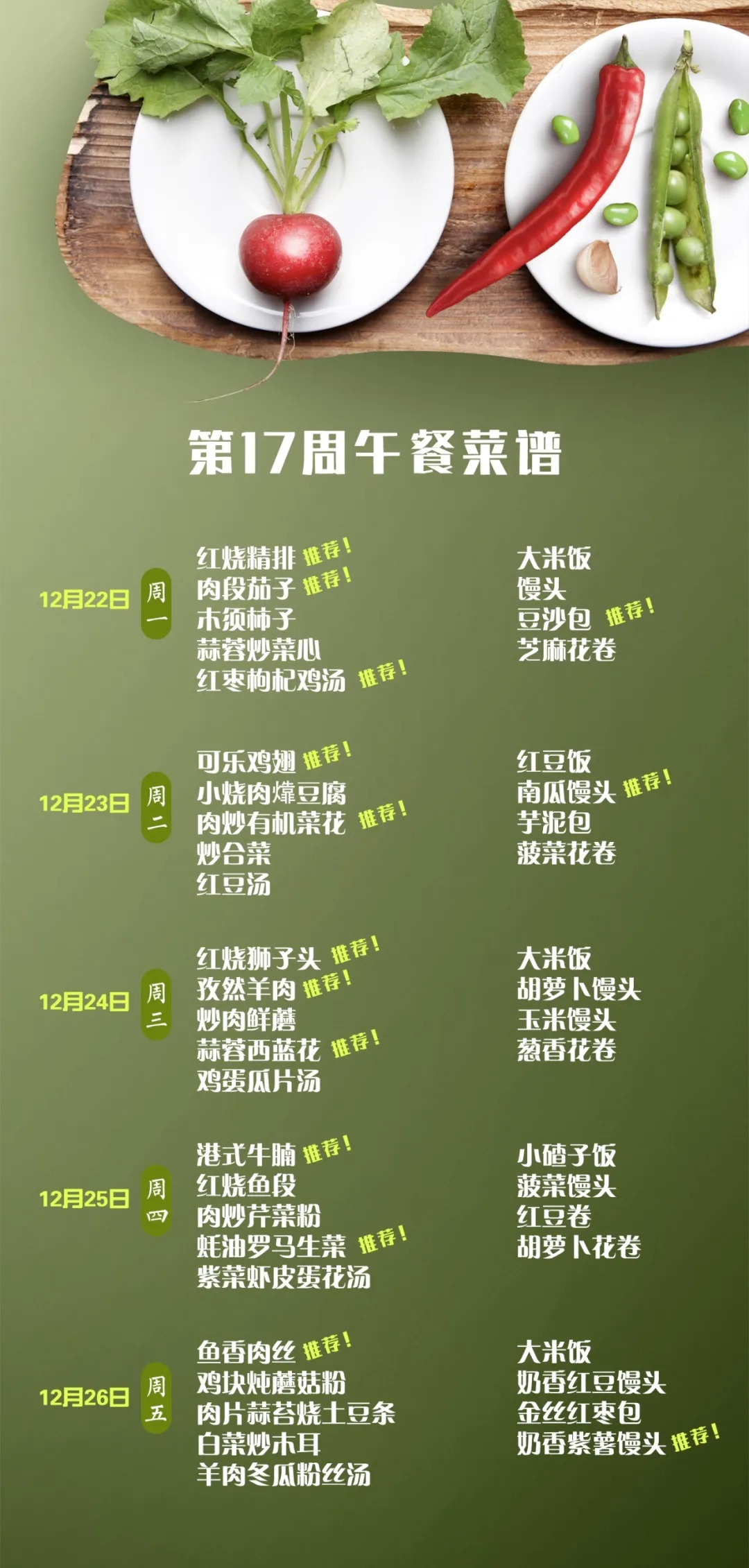 下周食堂精心定制暖心菜谱