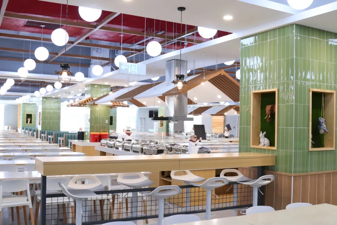 清晨,食堂亮起暖黄的灯