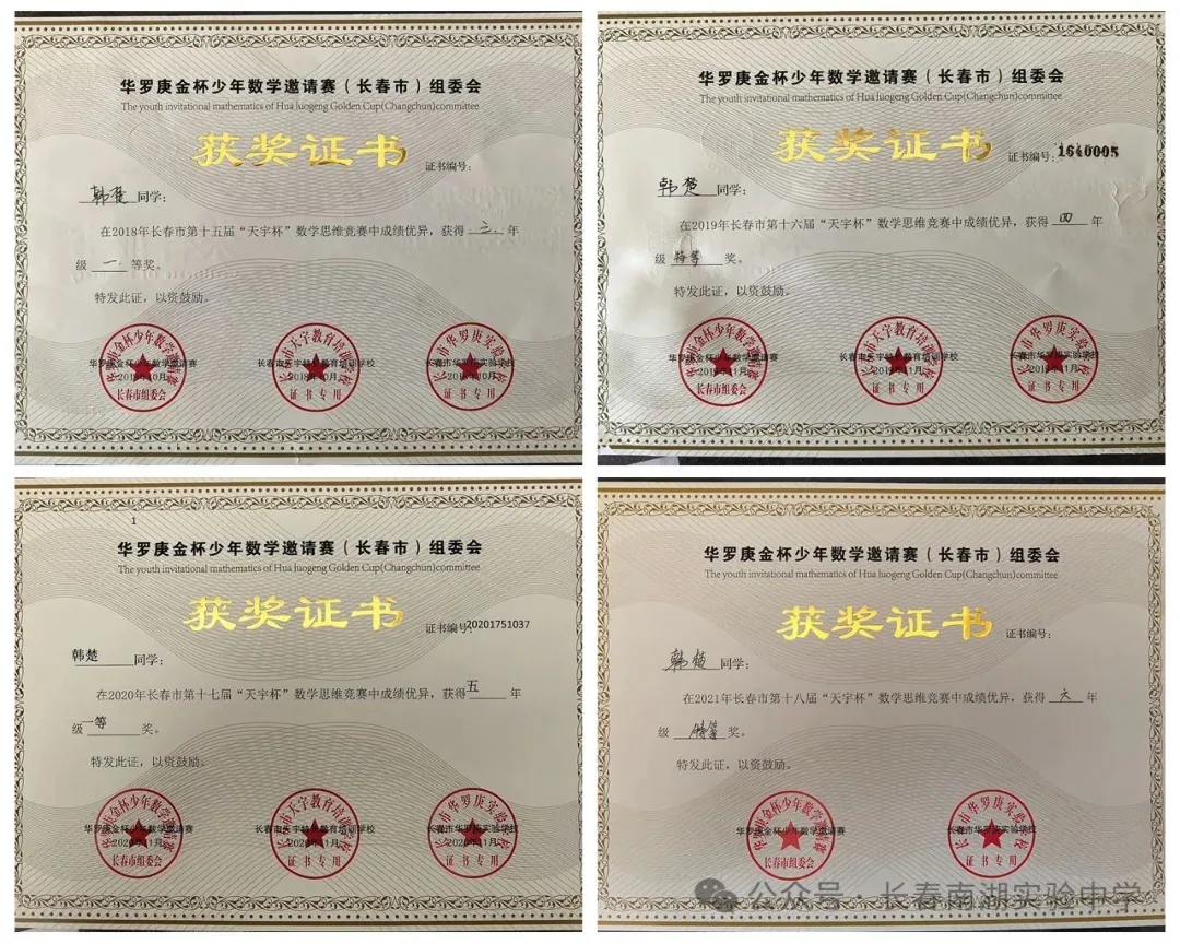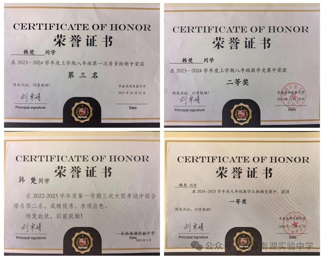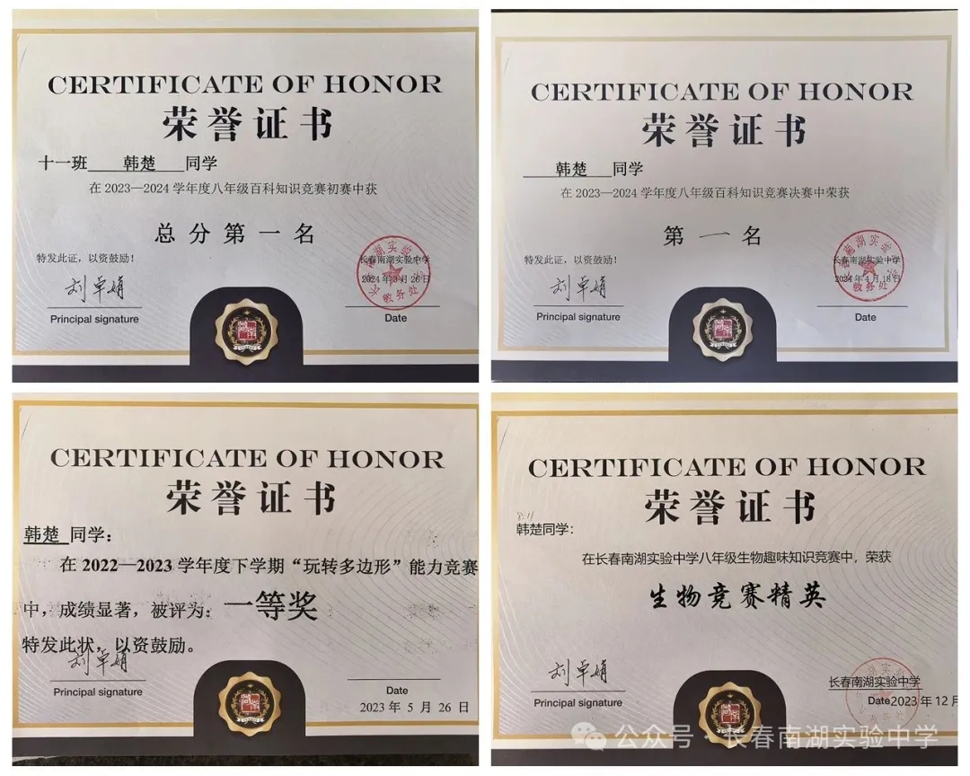 ● 2023-2024学年度长春南湖实验中学一等奖学金
