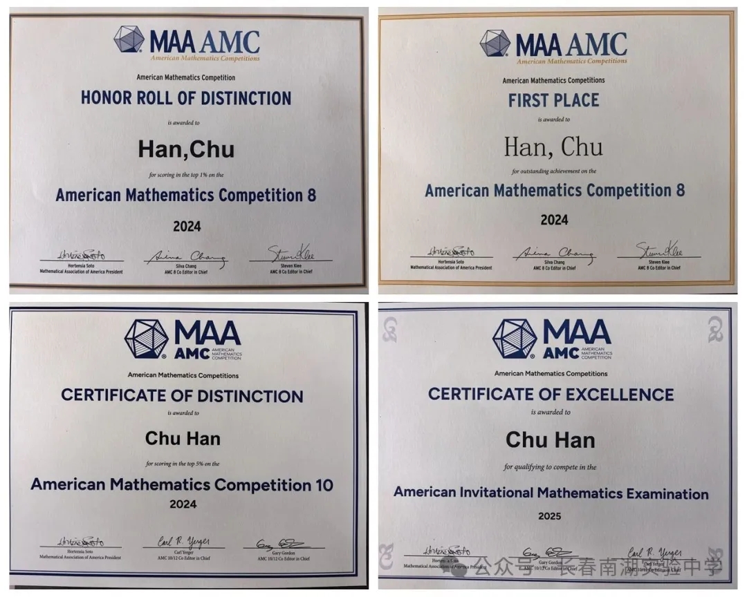● 2024年AMC8(英文)全球前1% 获全球卓越奖