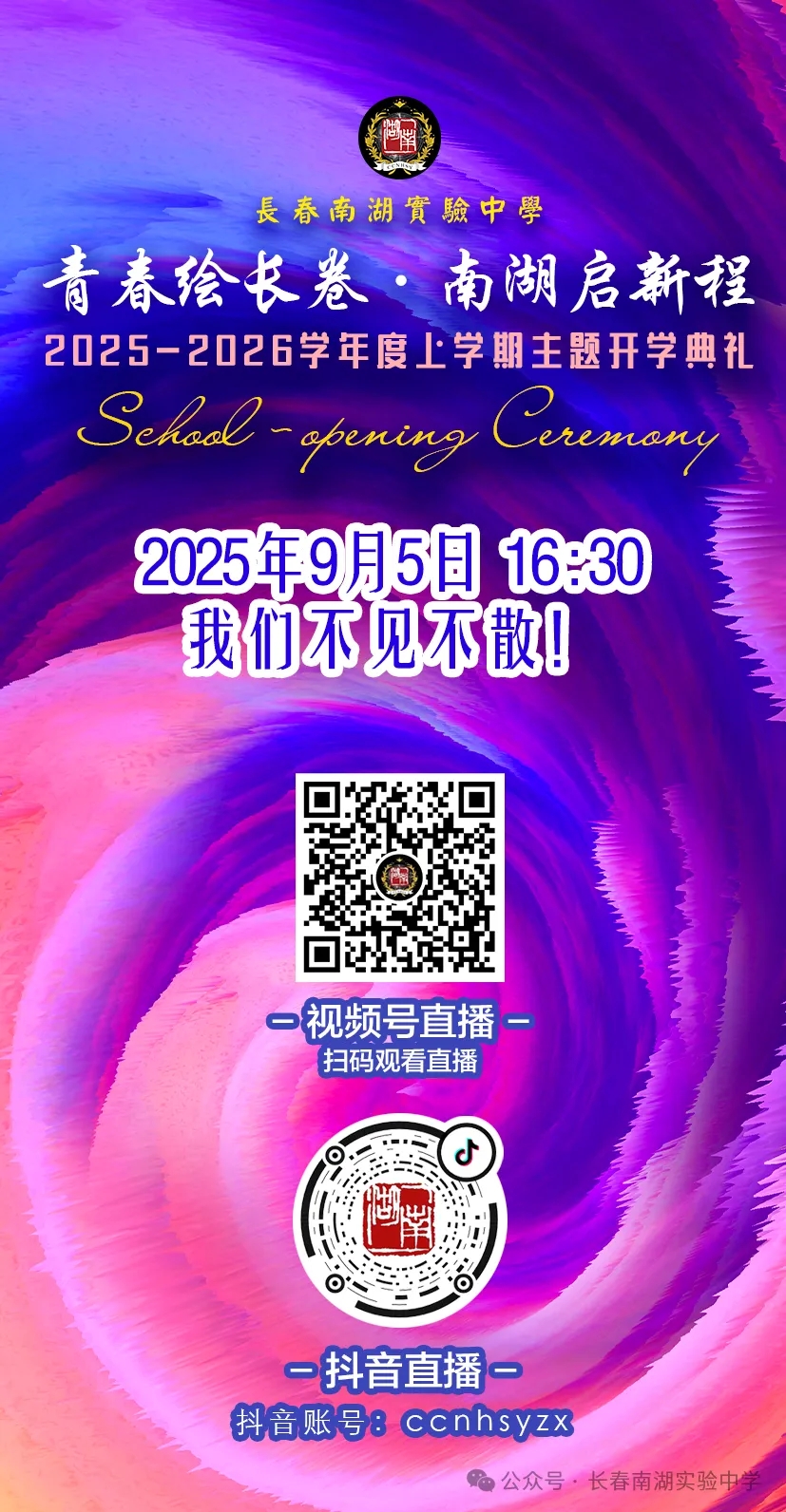 【南湖实验中学】重磅预告 |“青春绘长卷·南湖启新程” 主题开学典礼9月5日16时30分隆重启幕 欢迎观看盛况直播
