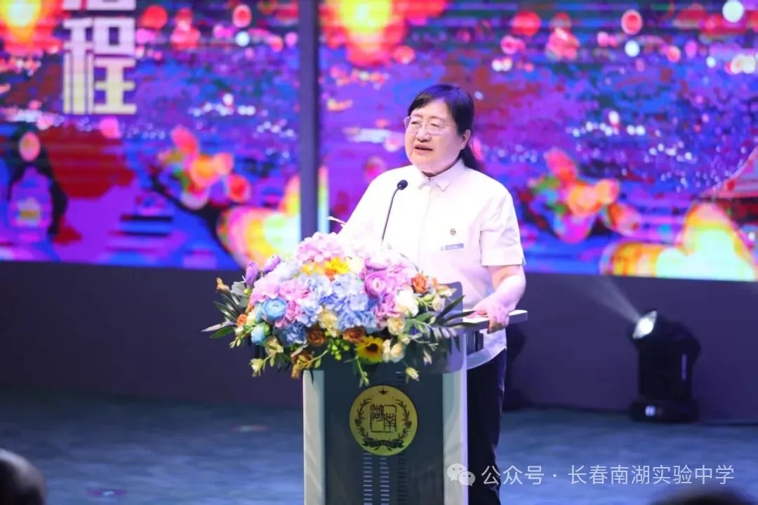 长春南湖实验中学刘卓娟校长在致辞中,首先回顾了学校的发展历程。她提到,2023年南湖中学初建时,王祖良理事长始终亲力亲为,从校区设计到建材选购的每一个细节都倾注了大量心血,最终铸就了今日设施现代化、校园气象蓬勃的宏美新校区。这里也必将成为春城教育版图中一颗璀璨的明珠。