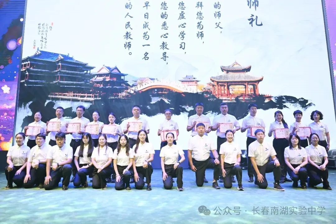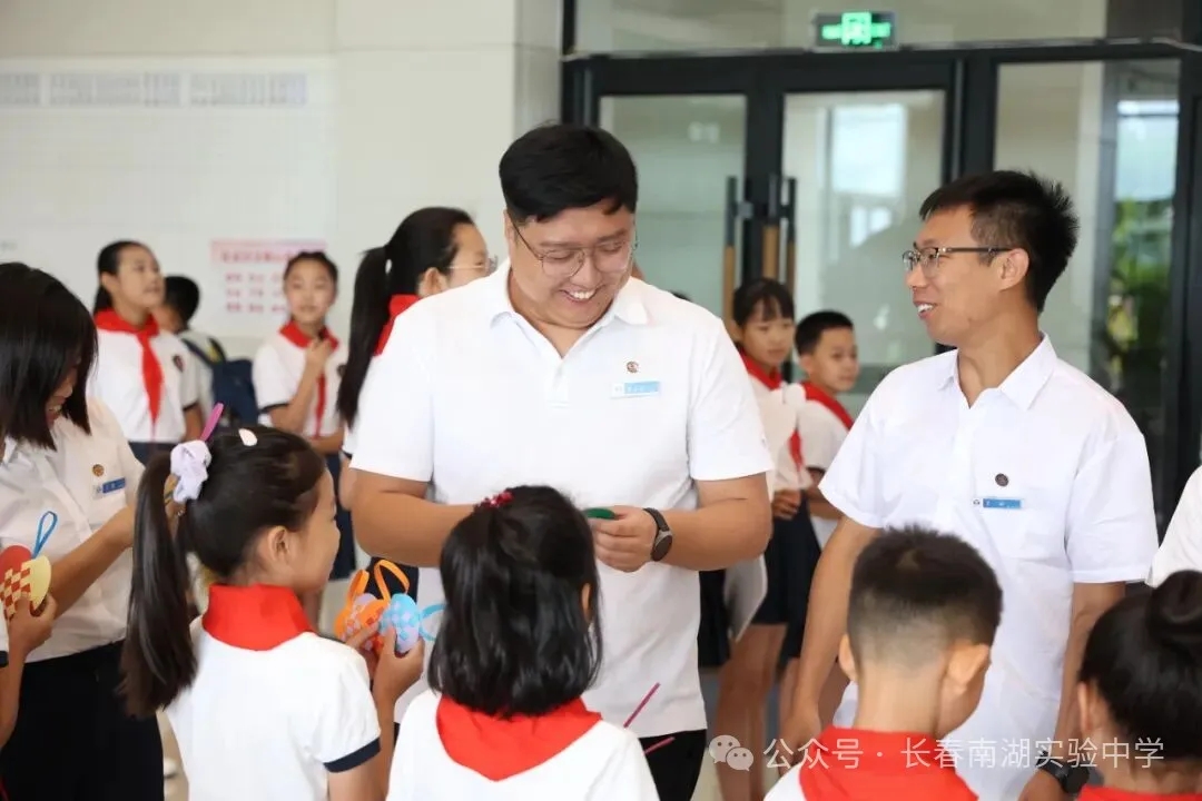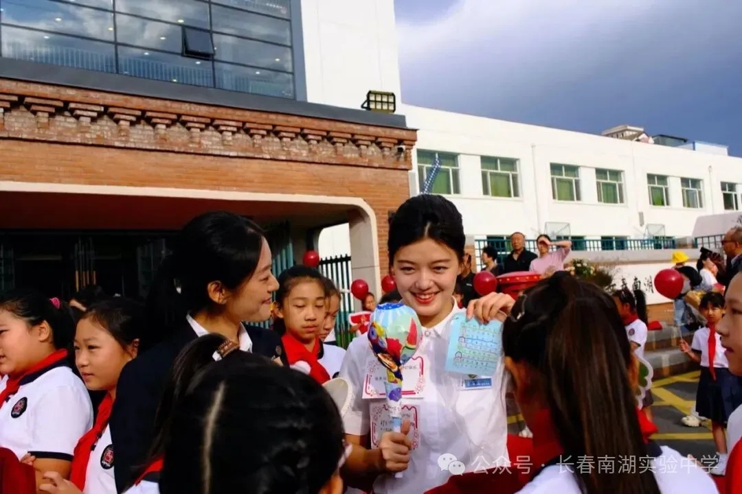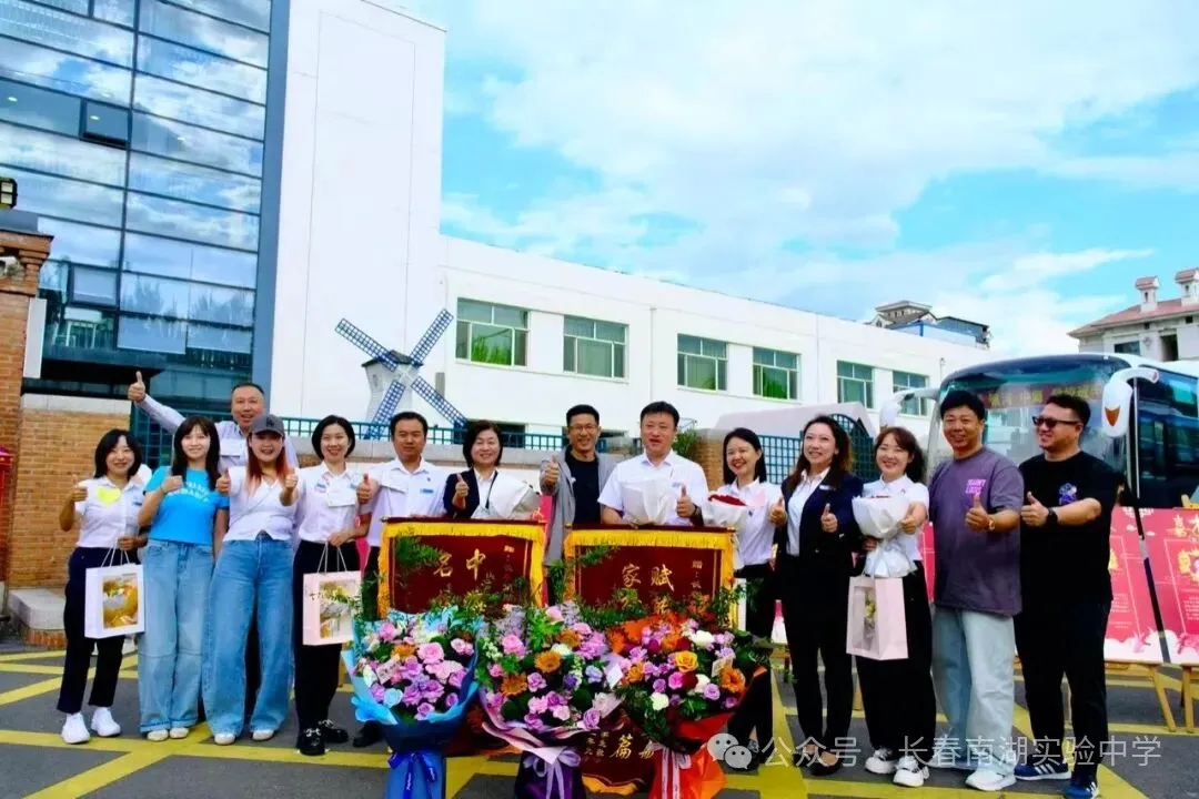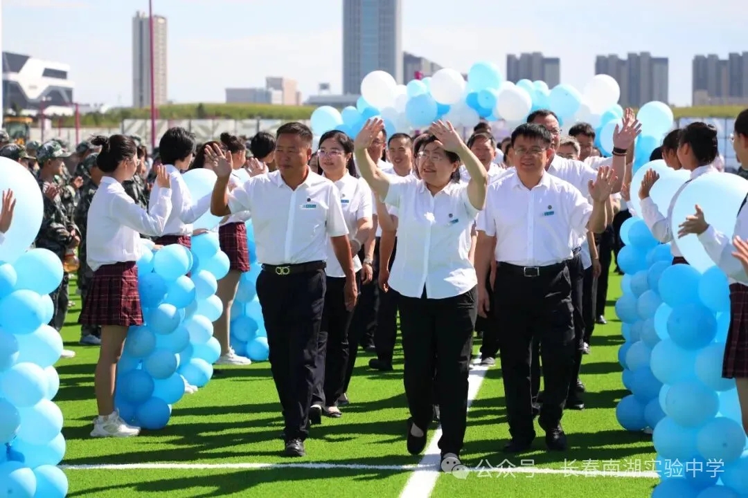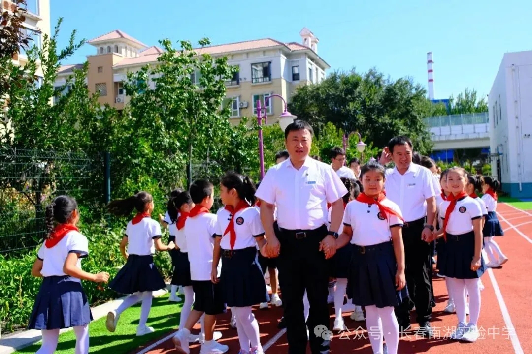 长春南湖实验中学新校园落地净月高新区,得到净月高新区各部门的关心和支持,尤其净月高新区教育局的各位领导一直关注项目进展,不仅多次实地调研、协调解决相关难题,还在政策指导等方面给予全方位支持,全力保障新校址建设顺利推进、搬迁工作平稳落地。这次教师节,净月高新区教育党委书记、局长徐洪兵,副局长王大亮更是亲临颁奖典礼,并为"先进个人"及"先进班集体"颁奖。两位领导亲切慰问获奖代表,勉励全体教师,其深切关怀极大地鼓舞了全体教师坚守初心、奋发作为的热情。