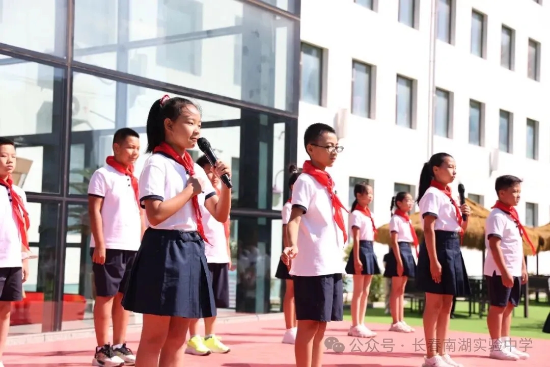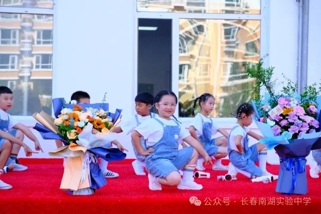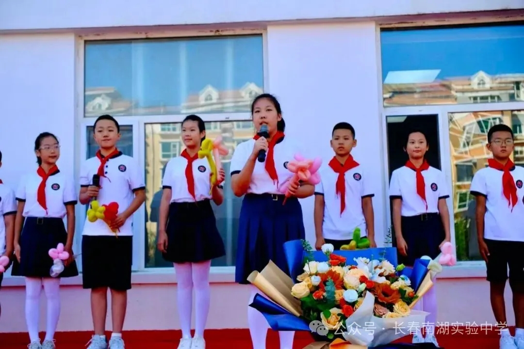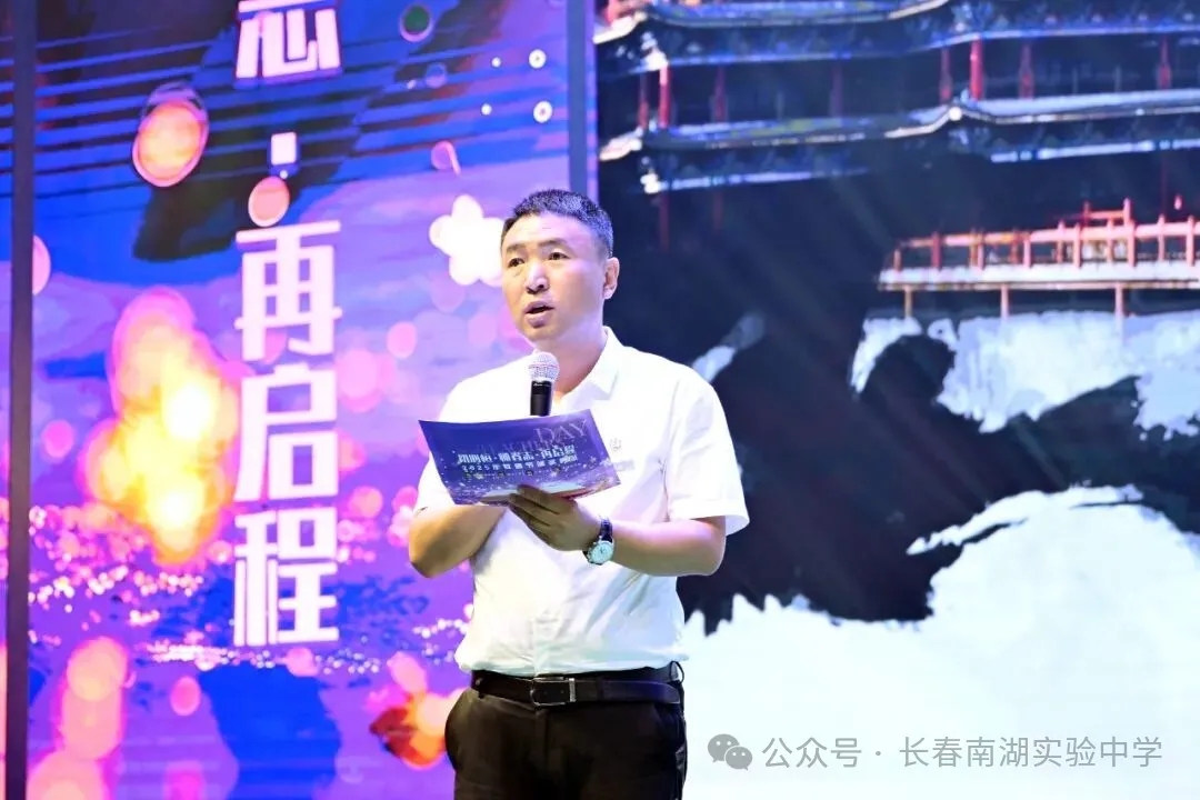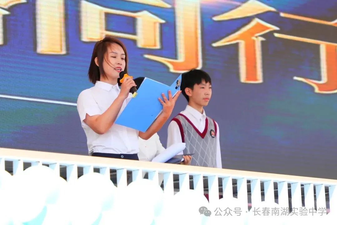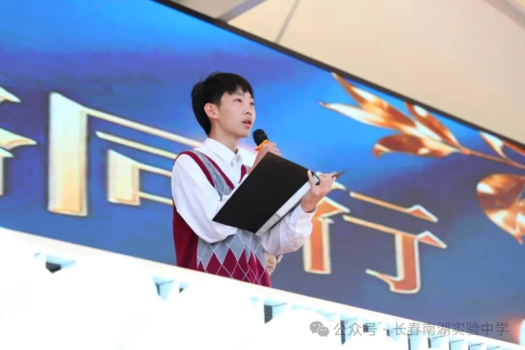 “这份工作从不是单向的付出。当看到曾经调皮的孩子学会了担当,当收到毕业多年的学生发来的一句‘老师,谢谢您’,当我们为一道难题争论得面红耳赤,最终在豁然开朗时相视而笑;——这些时刻都让我们明白,教师的幸福,藏在每一次用心的陪伴里,藏在每一个成长的蜕变中。”教师代表孙鹤老师说出了老师们的心声:同学们,学习的路或许有荆棘,但请记得,校园里永远有一群人,愿意做你们的灯塔:当你们困惑时,我们会耐心指引;当你们进步时,我们会真心喝彩。也希望你们能珍惜校园的时光,不仅收获知识,更能学会感恩、学会坚持,长成眼里有光、心中有爱的南湖少年。