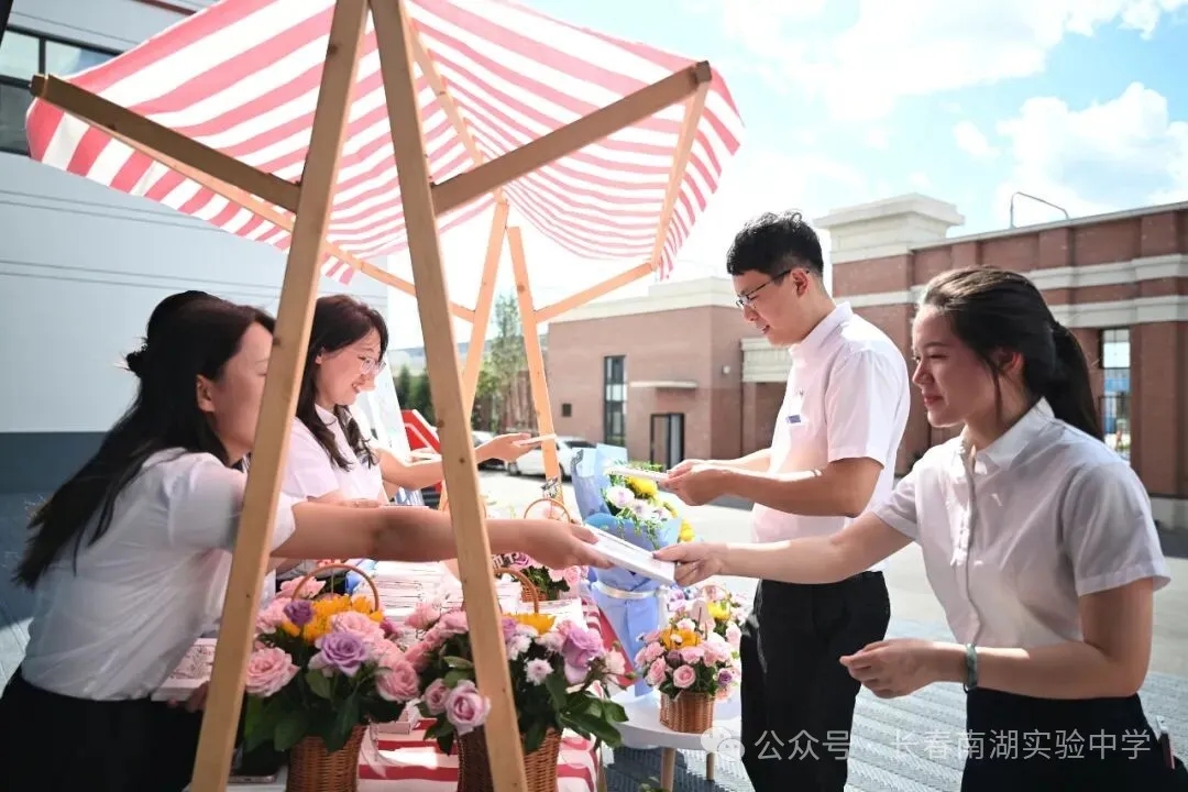 清晨,家长们送来鲜花与锦旗,如同春日里最绚烂的花海,成为了教师节里最动人的风景线。锦旗上的话语熠熠生辉,每一束花、每一面旗都承载着家长们对老师们深深的感激与敬意。