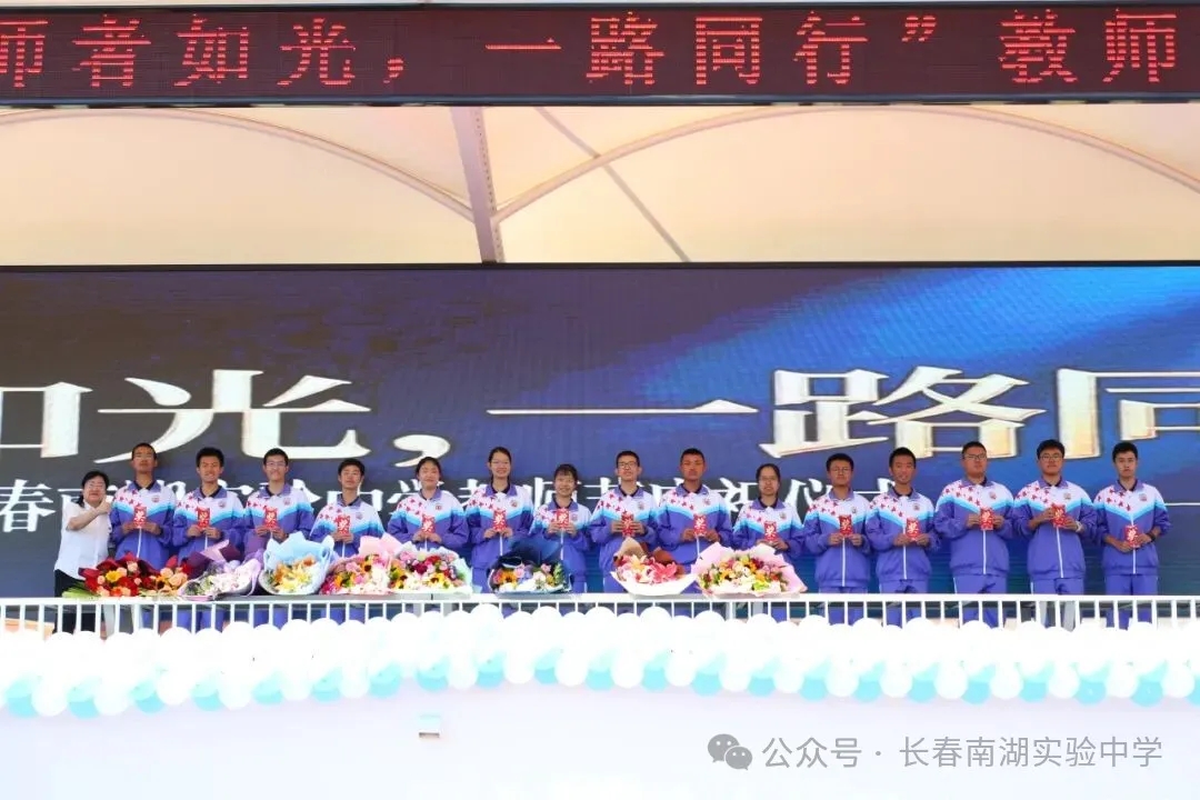 今年的教师节更增添了一份特殊分量与深刻意义。回望,在学校领导擘画引领下,全体教师锐意革新,实现办学实力与育人成效的双重跃升。今朝,新落成的南湖中学正式启用,以现代化设施与优质师资,为学校注入全新活力。未来,我们将深耕教育主业,乘南湖中学东风,以更昂扬姿态提质赋能,推动学校发展再攀新峰。