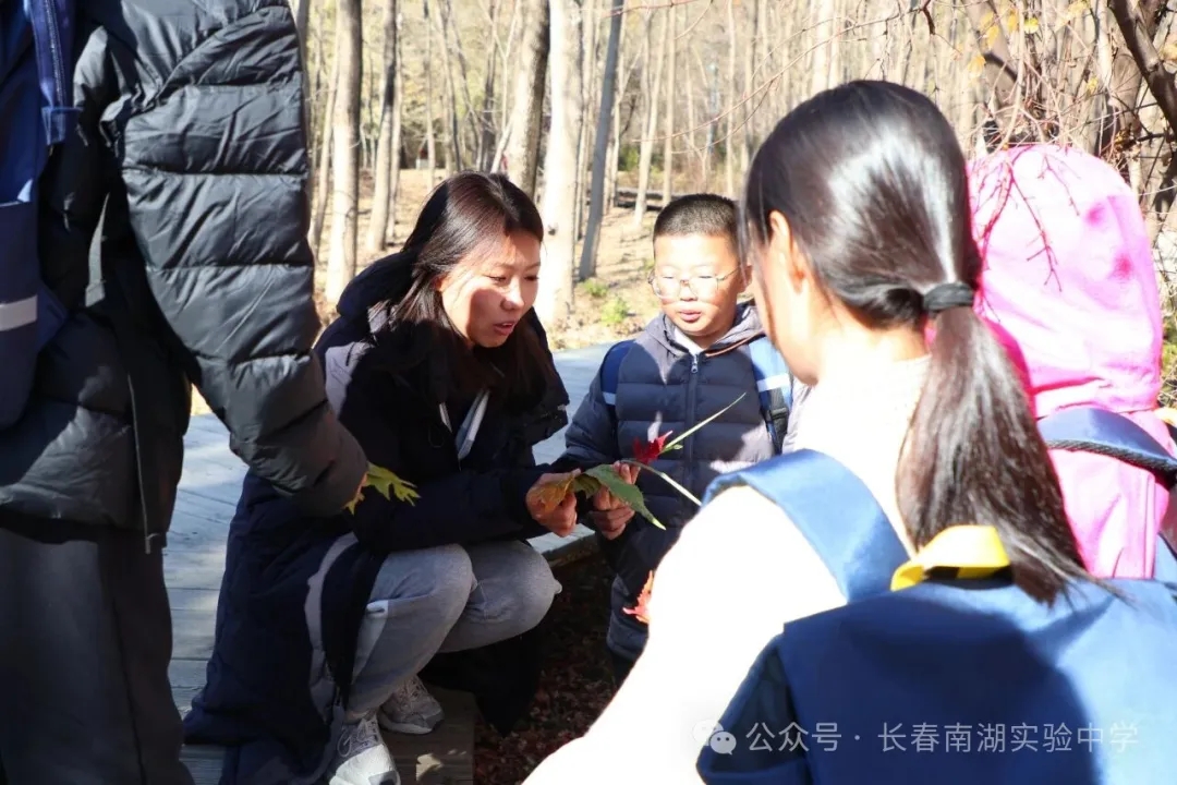生物老师带领孩子们在徒步中实地观察净月潭的植物,了解不同植物的形态、特征……这是一堂行走的生物课,让课本知识在自然中鲜活起来。