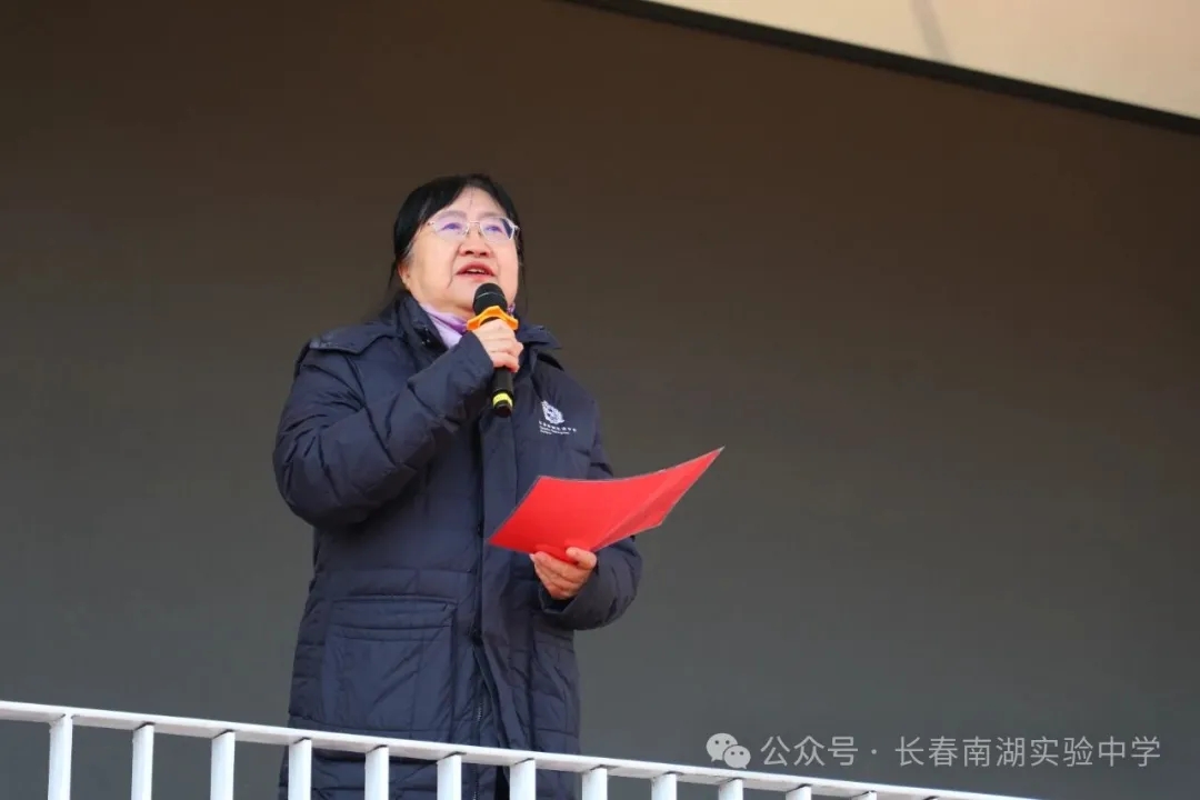 刘卓娟校长宣布“聚力前行 毅路有你”长春南湖实验中学徒步节暨户外课程第十二期活动正式启幕。