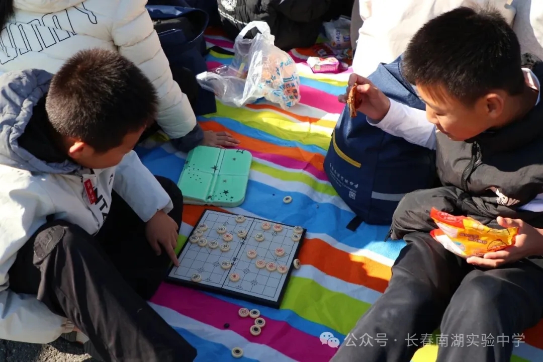 徒步不仅是意志的考验,更是心灵的释放,同学们在自然的怀抱中尽情欢笑、释放学业压力。打沙包、吹泡泡、下棋……清脆的笑声交织,瞬间找回纯粹的童年快乐。