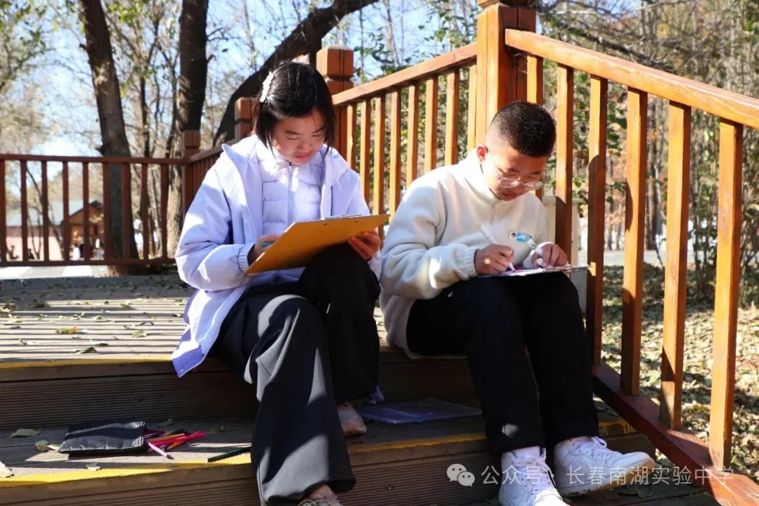 将自然之美收入画板,在美术老师的指导下,同学们在这优美的风景中练习速写,学习色彩搭配与构图技巧,用镂空画记录自然的光影与色彩……在这里,每个人都是净月潭最美风景的创造者。