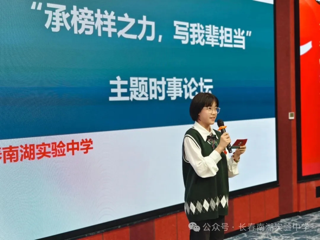 榜样,是夜空中最亮的星,指引我们前行的方向;担当,是青春最厚重的底色,承载着民族未来的希望。2025年11月7日下午,长春南湖实验中学“承榜样之力,写我辈担当”主题时事论坛隆重举行。南湖学子共话榜样精神,共述青春志向,在思想的交流与碰撞中,凝聚起“我辈担当”的共识与力量。