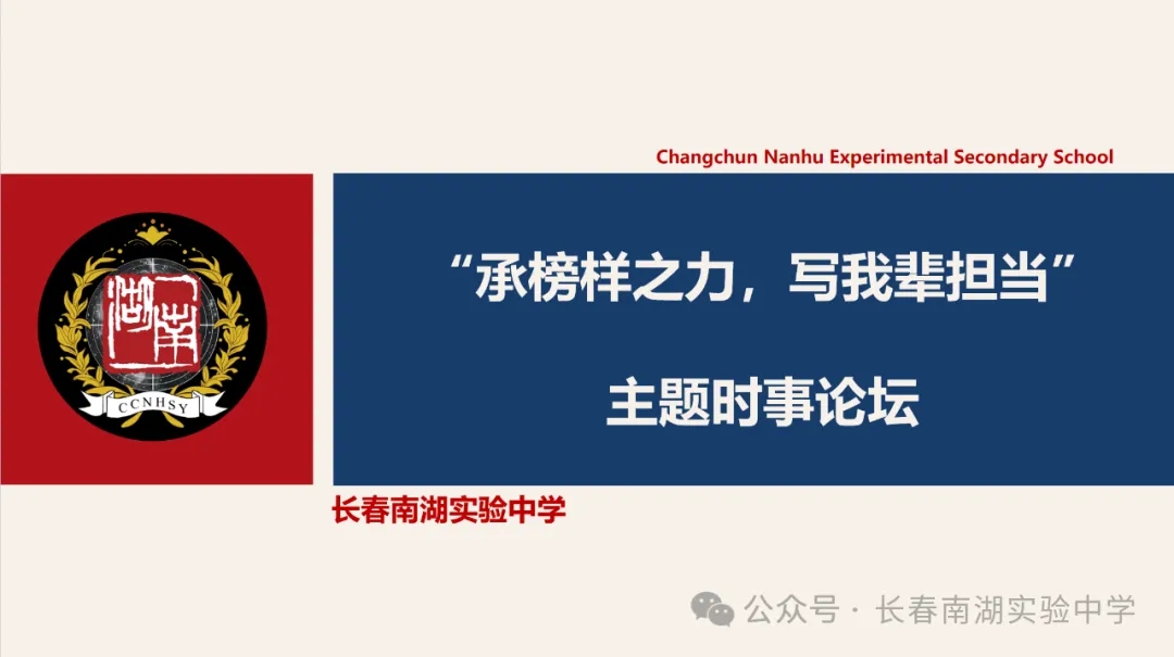为培养南湖学子的国际视野和爱国情怀,铭记历史所赋予的责任和使命,做一名以民族复兴为己任、奋发向上、心怀天下的创新接班人,长春南湖实验中学隆重推出“时事论坛”活动。