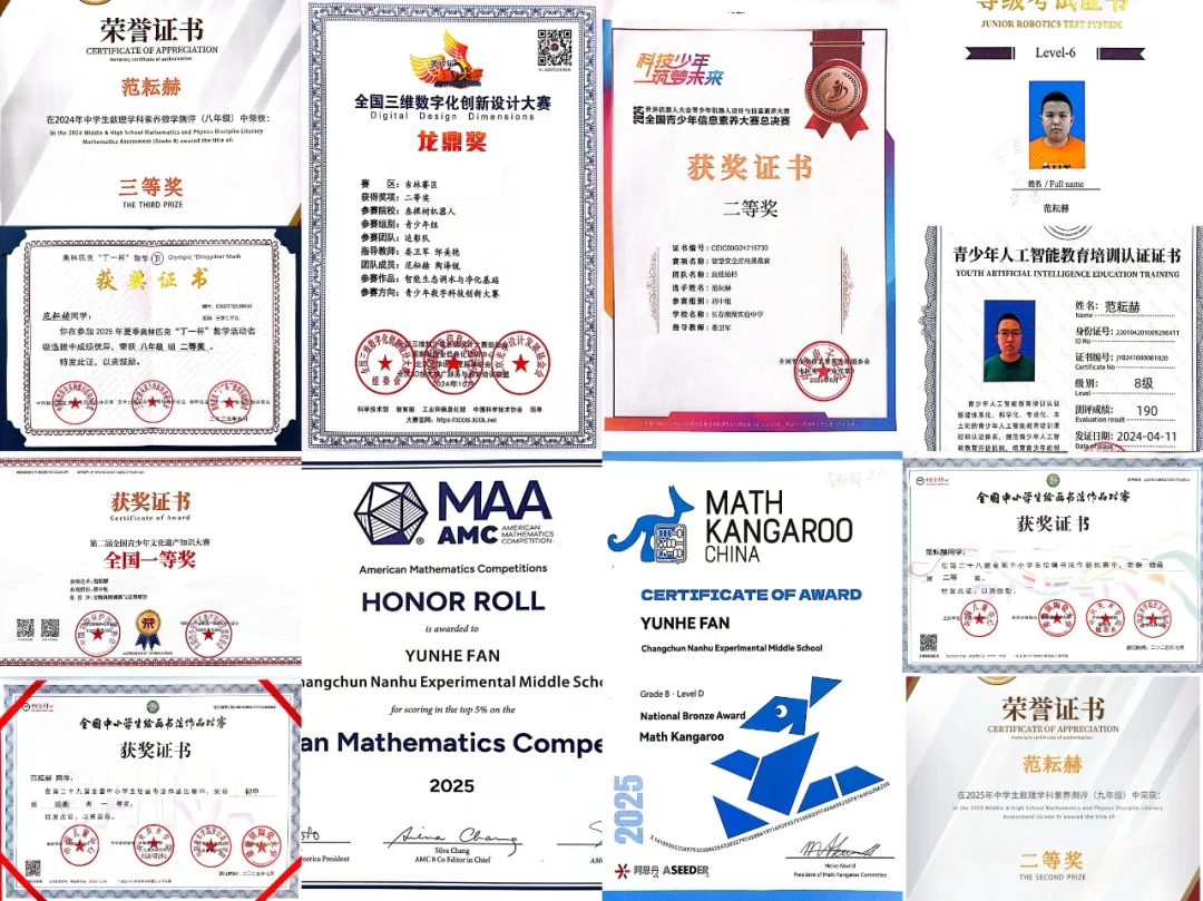 ● 2025美国数学测评(AMC 8)荣获全球优秀奖