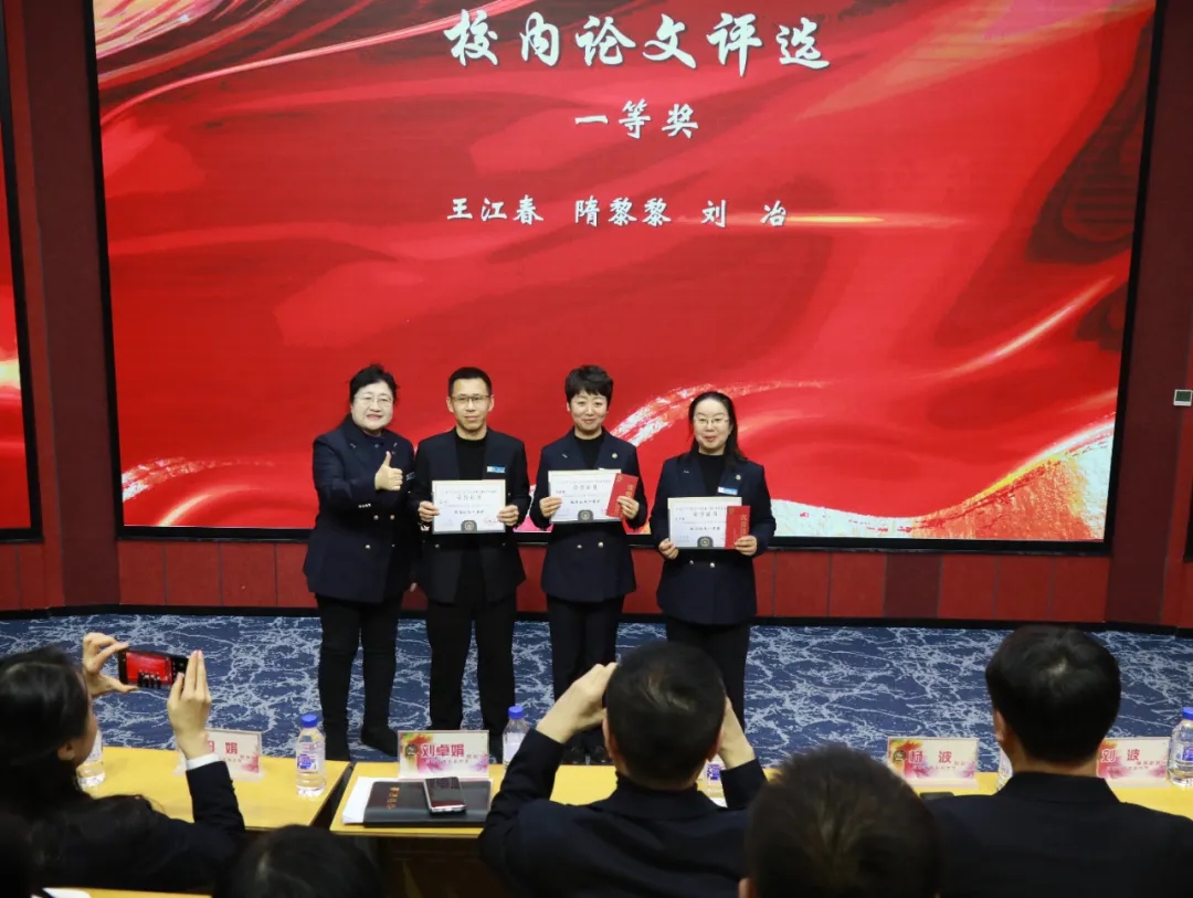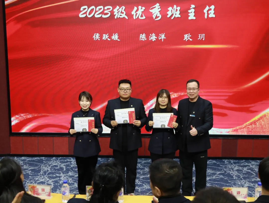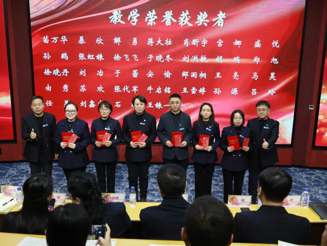 刘波常务副校长和解长军副校长为获得骨干教师等荣誉,以及在各级各类比赛中获奖教师代表颁发证书和奖金。