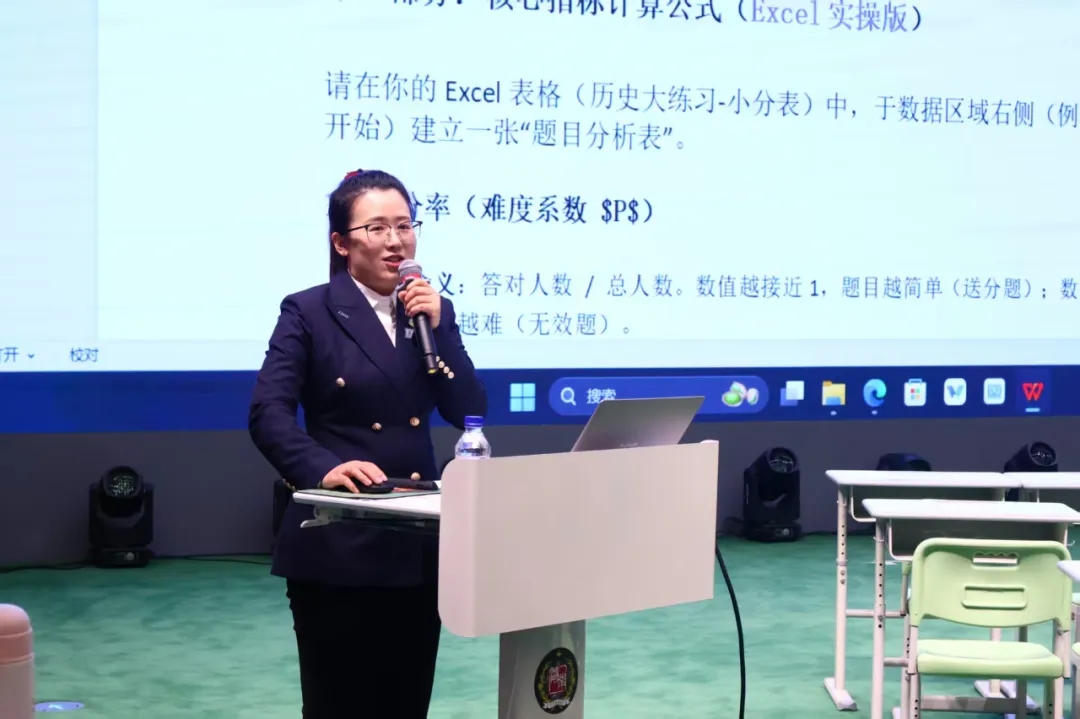 刘洋老师的《AI赋能测试评价》分享,将技术深度融入了教学评价的全流程。刘老师从宏观、中观、微观三个层次,现场演示了强大的“秒级算力”——AI如何瞬间梳理考点、计算区分度,并通过错题归因,一键生成全班及个人的“知识薄弱点图谱”;多维度的成绩对比图表与个性化练习题的自动推送,彻底将教师从烦琐的表格统计中解放出来。科技的介入,让教学从“主观经验研判”大步跨向了“科学化、智能化决策”,为差异化教学提供了无可辩驳的数据支撑。