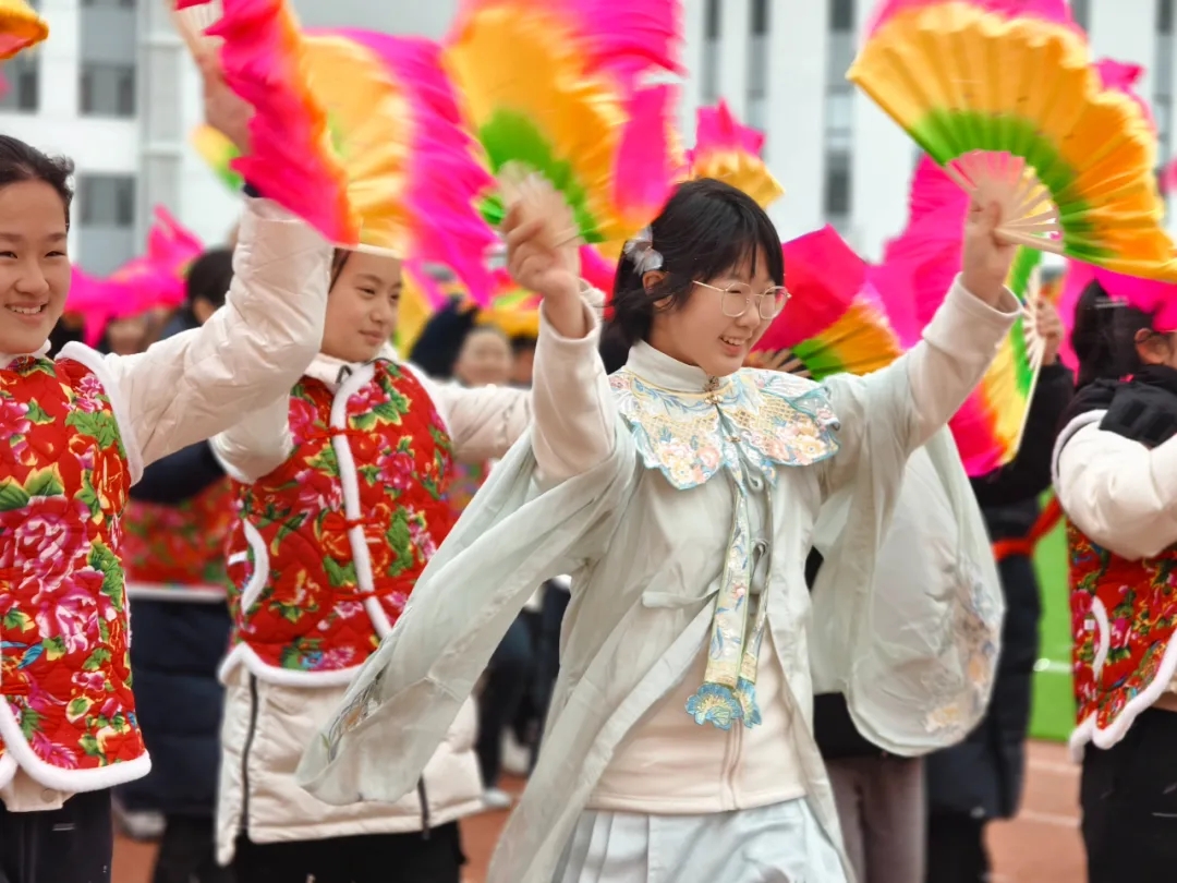 铿锵锣鼓声穿透轻雪,师生们踩着明快节奏,扭腰、摆扇、踏步……每一个方阵都各有特色、亮点十足。这一刻,传统的东北大秧歌被注入了青春的血液,掌声、笑声、锣鼓声交织在一起,汇成了一曲最动听的节日交响乐 。