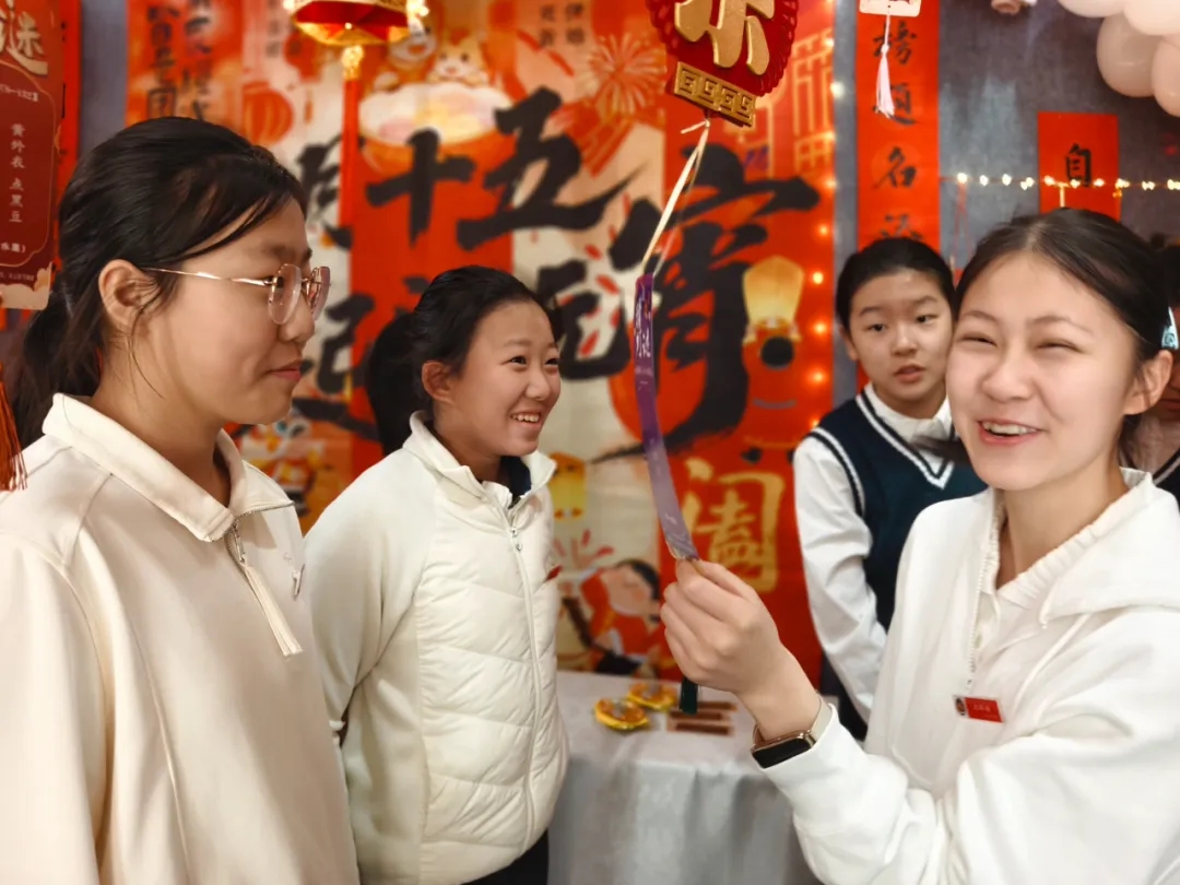 正月十五元宵佳节,南湖八年级“灯火良宵・南湖锦绣”元宵游园会在教学楼一楼正厅启幕。南湖少年以灯、谜、联为媒,沉浸式体验元宵民俗,让千年传统文化在校园绽放新时代少年风采。