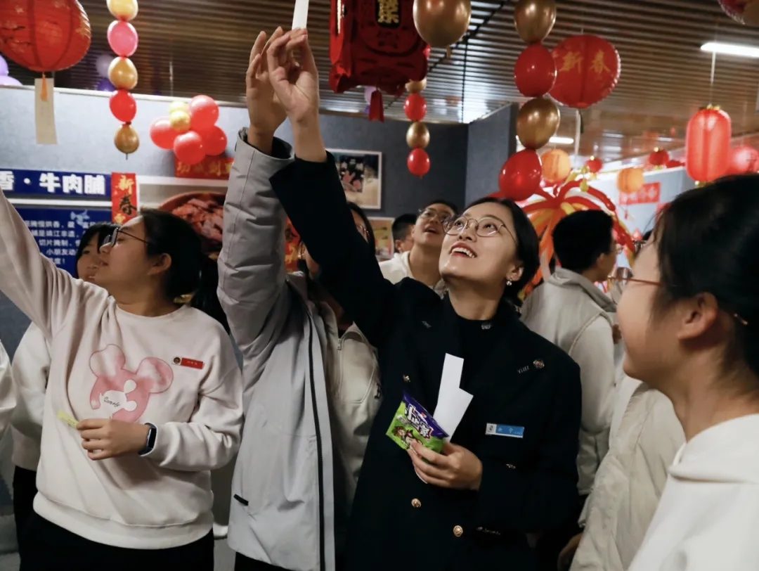 花灯之下,千余条涵盖文学、历史、科学等内容的灯谜随风轻摆。同学们或独自凝神思索,或结伴探讨玄机,猜出谜底后雀跃兑奖。小小的奖品承载着破解谜题的成就感,少年们在欢声笑语中品味灯谜文化,收获知识探索的乐趣。