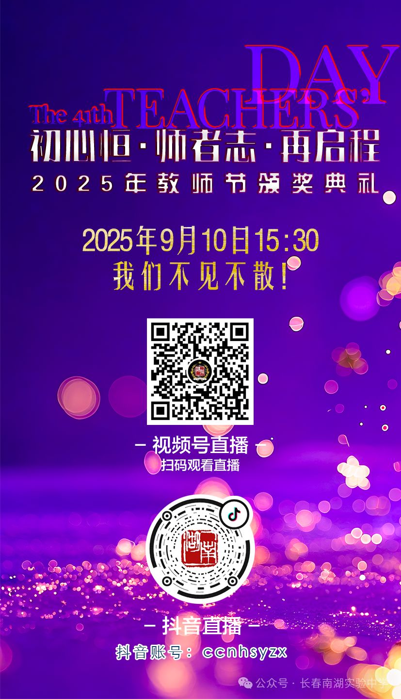 【南湖实验中学】重磅预告|“初心恒·师者志·再启程”2025年教师节颁奖典礼将于10日15时30分隆重举行,欢迎观看直播盛况!