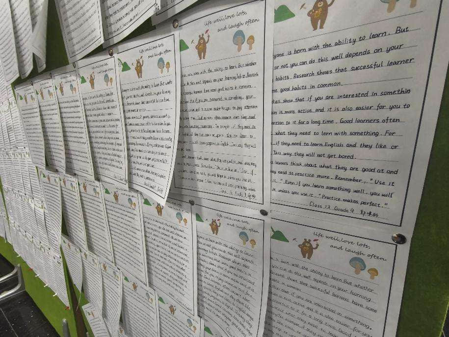 九年级学子认真完成英语书法,他们用创意和热情为我们书写英语文章。在书写过程中,学生提升了英语写作技能,培养了良好的写作习惯,并在书写中感受到英语语言的魅力,开拓国际视野的同时培养学生的文化自信。