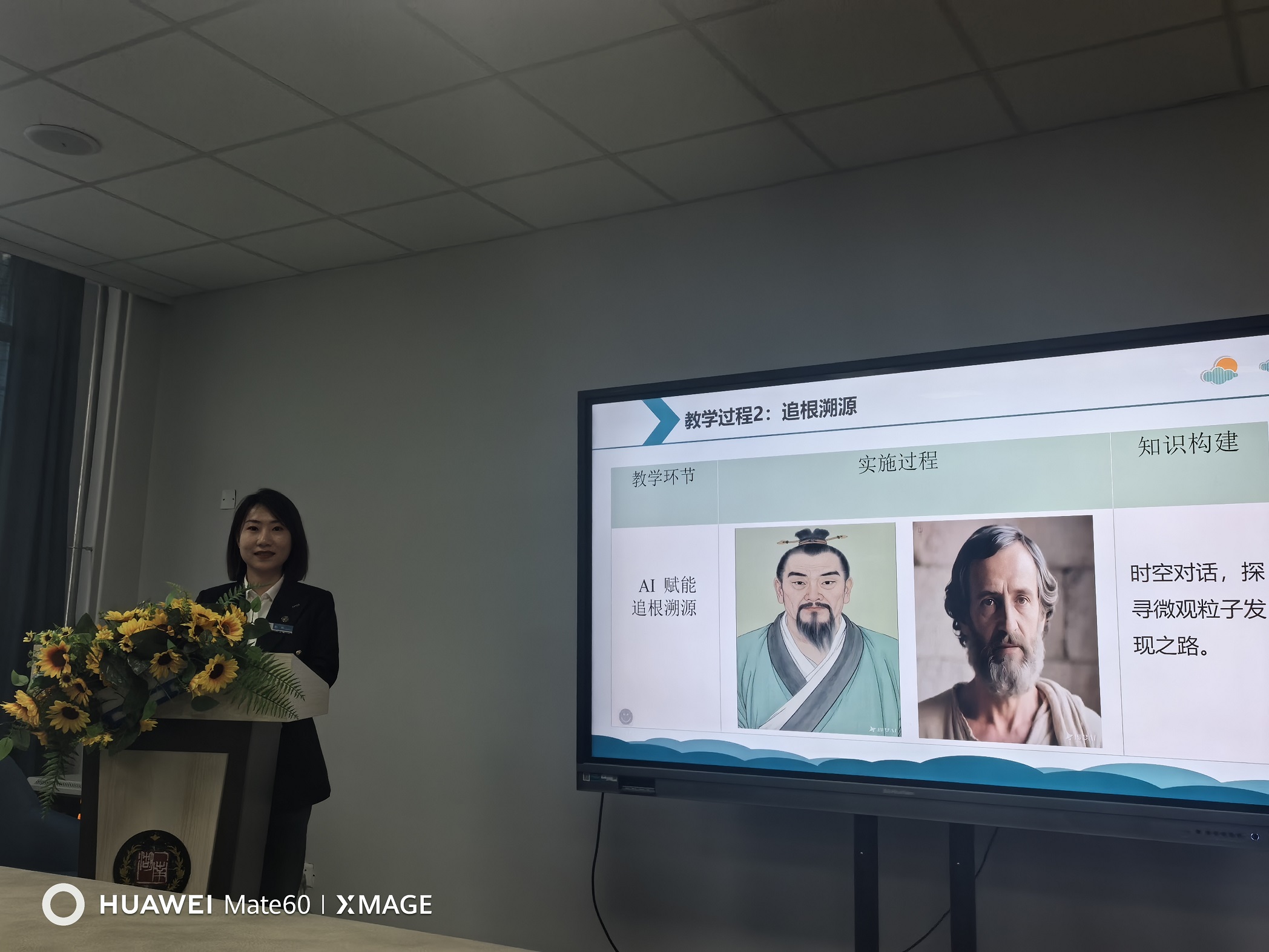 杨旭老师带来的是AI赋能下《分子和原子》的教学设计分享。他打破传统教学模式,让同学们能够与古代的化学家隔空对话,借助先进的科技手段,为抽象的化学知识赋予了生动的呈现形式,展现了信息技术与学科教学深度融合的无限可能。