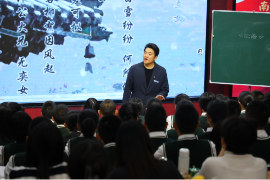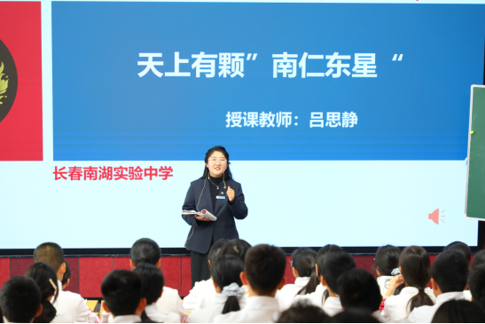 八年级备课组组长高波老师担任主持,并作题为《课程为“纲”,教研启“智”,素养生“根”》的专题报告,系统呈现了长春南湖实验中学以核心素养为导向的课程体系建设成果,展现了学校在语文教学改革中的扎实探索。